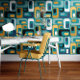 Bring a touch of retro flair to your interiors with this joyful wallpaper featuring a unique geometric design. The retro mood pattern combines bold moody colors that can transform any room into a stylish haven. Perfect for those looking to make a bold statement, this wallpaper is sure to impress your guests and enhance your decor. Explore the endless possibilities of revitalizing your environment and express your personality with this eye-catching design.