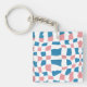 Retro Mod Pink Blue Checkerboard Abstract Keychain