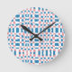 Retro Mod Pink Blue Checkerboard Abstract Round Clock