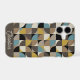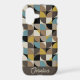 Retro Mod Squares Blue Brown Name Personalized iPhone Case