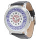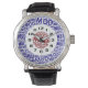 Stylish Mens retro look wristwatch with a modern twist, red white and blue mod target typography word art. Classic Mod scooter boy sixties iconic roundal target made up of the words Mod in red white and blue