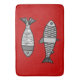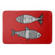 Retro Modern Fish, Deep Red and Gray / Grey Bath Mat