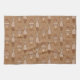 Hand towel in a Mid-Century Modern, whimsical, retro fish pattern, in shades of tan, rust, beige, brown, and white, on a light cocoa brown background