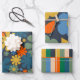 Retro Modern Floral Geometric Patterns Wrapping Paper Sheets