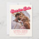 This modern pink and red save the date features a bold, retro-inspired headline paired with a large photo on the front for an eye-catching first impression. Clean typography and warm tones keep the layout feeling fun, polished, and easy to read. A second photo appears on the back, giving couples a little extra space to share another favorite moment while keeping the overall design simple and balanced. Ideal for couples who want a photo-forward save the date that feels personal, modern, and memorable.