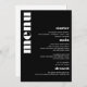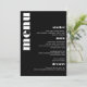 This minimal, simple, modern yet retro and bold wedding menu design is perfect for your youthful yet contemporary wedding. This black and white menu pairs perfectly with the rest of our Retro Minimal Modern Wedding collection of stationary and wedding decor.