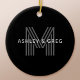 Retro Modern Name/s Editable Monogram Black & Gray Ceramic Ornament