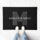 Retro Modern Name/s Editable Monogram Black & Gray Doormat