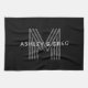 Retro Modern Name/s Editable Monogram Black & Gray Kitchen Towel