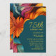 Retro Modern Teal Orange Psychedelic 75th Birthday Invitation