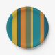 Retro Modern Vertical Stripe Pattern Teal Orange Paper Plates