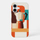 Minimalist illustration of a moka pot in a geometric vintage style, with soft shapes and a warm palette.