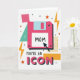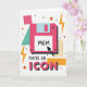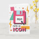 This card features an oversized retro-style portable data storage disk in hot pink, set on a white background for strong contrast ❤️. A light blue accent and a bright white label sit on the disk, drawing your eye to the center. On the label, the word “MOM” appears in black, with a black arrow pointing in to make it feel like a direct, affectionate callout. Around it, geometric shapes add a friendly, close-knit energy, like little design “friends” gathered together—there’s a teal triangle, a pink square with tiny white dots, and an orange rectangle filled with a grid pattern 🌼. Small black and orange stars and sharp yellow lightning bolts are scattered across the space, giving the layout a lively, upbeat rhythm. Below the disk, the text “YOU’RE AN ICON” is placed near the bottom, with “YOU’RE AN” in black and “ICON” in hot pink. The word “ICON” is drawn with a chunky 3D look and a shadow that makes it stand out against the white background. The hot pink disk sits centered, surrounded by teal, orange, and yellow accents, with the lightning bolts and stars sprinkled all around.