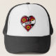 Personalize Mom tattoo trucker hat with retro flowers filled lace heart and a ribbon with the word MOM in the center all in classic tattoo style. You can change the text to any Mother or a name on the mug. A great hat to give as a mothers day gift for the Mom your life.