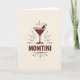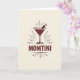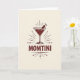 Designed with a retro-style etched illustration, the card centers on a tall cocktail glass that feels like it’s raised in a gentle toast between close friends ❤️. Inside the bowl, a deep crimson drink is dotted with tiny starburst sparkles that suggest soft fizz and a flirty, celebratory mood. A twin-berry garnish sits on a slim skewer across the rim, adding a neat, affectionate detail like a shared treat. Radiating lines and small arrow-like accents fan out from the glass, guiding the eye inward the way a warm glance draws you closer. Beneath the illustration, the word “MOMTINI” appears in large serif lettering, centered and set in the same burgundy-red ink as the drawing. The background is a warm, muted beige that keeps the two-tone look cozy and slightly nostalgic, like an old café menu 🌼. Fine linework defines the glass stem, the sparkle marks, and the garnish, all in earthy red against the beige field. Subtle rays extend outward around the glass, with the text sitting neatly below in matching red.