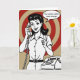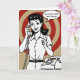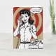 Designed with a retro comic-strip look, the card shows a poised woman drawn in sharp black and white, her eyes meeting yours with a knowing, friendly warmth ❤️. She holds an old-style phone receiver to her ear while lifting one finger, as if gently insisting you listen to the latest family news. A white speech bubble near her head carries the message “Your mother called... same message,” set in dark lettering that reads clearly against the pale bubble. The scene feels like a familiar inside joke, with her slight smile suggesting affection rather than annoyance. Beneath her, part of a classic rotary telephone appears, and the coiled cord curls across the lower area like a tidy line drawing. Behind her, wide concentric circles spread outward in warm beige and deep red, adding a romantic, cozy glow 🌼. The circles form a target-like pattern that frames her face and the speech bubble in the center.