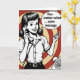This card features a mid‑20th‑century comic-style illustration of a confident woman with dark, waved hair drawn in high-contrast black and white. She holds a classic telephone receiver to her ear, leaning in as if sharing a familiar bit of news with a close friend ❤️. Her other hand is lifted with an open palm, adding a teasing, “you know how this goes” gesture that suggests warm camaraderie. Behind her, concentric circles in deep red and creamy yellow radiate outward, like sound waves carrying the message across the room. A white speech bubble near her face contains the line “Your mother called ... same message.” in bold black lettering. The woman wears a light collared top, and the phone’s base sits nearby, grounding the scene in a cozy, everyday setting 🌼. The background rings alternate red and cream-yellow, expanding from behind her head toward the edges of the design.