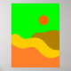 This stylish poster features a colorful and bold illustration of a retro mountain landscape