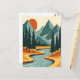Retro Mountain Landscape Illustration Red Blue Postcard