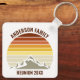 This cool orange vintage sunset over rocky mountains in nature makes a great image on a cute keychain for a family reunion, road trip, or summer vacation. Commemorate your holiday week with a fun keepsake gift with your own last name and the year.