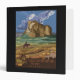 Modified, retro, Eagletail Mountains Wilderness in Arizona travel poster for front of this travel scrapbook and/or photo album. The image is of a man on a horse passing a large mountain through the desert in Arizona. The image has a modern graphic vibe with multiple colors of browns, greens, and blues and mixed with some yellow, orange, and purple clouds in the sky. Binder has a dark almost black background. Templates provided on spine. Perfect for your vacation scrapbook memories and/or photos from a trip to Arizona.