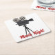 Fun paper coasters for those who love all things movies features retro tripod style movie camera with customizable red text. Great for movie night. Check out our collection of movie themed paper & party supplies!