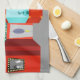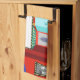 The stars are out in full force on this Retro Movie Theater Kitchen Towel--both the stars in the night sky and the stars on the silver screen. This 1960's style, minimalist art design features the exterior of a classic movie house from the Golden Age of Cinema. The red building has a brilliantly lit marquee, which says, "NOW SHOWING," in red letters. Beneath the marquee, a theater employee is ready for a crowd of movie going film buffs, which are sure to be lining up in droves. The silhouette of the clean cut, theater worker is just visible through the aqua glass of the box office ticket booth. Not a kernel of popcorn can be found on the spotless grey sidewalk. Grey double doors flank the ticket booth. The front of the building displays black and white movie posters surrounded by dramatically lit frames. One poster shows star crossed lovers in a dramatic scene and the other shows a swimsuit clad starlet whose career is as bright as the sun she worships. This product is from the brilliant minds at Zazzle's StrangeLittleOnion, who have brought you such cult classics as Retro Pool Party, Film Noir Martini and Retro Space Age Cartoon Couple. Critics agree; if you can only purchase one design this season, make it this one (or any of the other spectacular StrangeLittleOnion designs)!