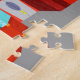The stars are out in full force on this Retro Movie Theater Puzzle--both the stars in the night sky and the stars on the silver screen. This 1960's style, minimalist art design features the exterior of a classic movie house from the Golden Age of Cinema. The red building has a brilliantly lit marquee, which says, "NOW SHOWING," in red letters. Beneath the marquee, a theater employee is ready for a crowd of movie going film buffs, which are sure to be lining up in droves. The silhouette of the clean cut, theater worker is just visible through the aqua glass of the box office ticket booth. Not a kernel of popcorn can be found on the spotless grey sidewalk. Grey double doors flank the ticket booth. The front of the building displays black and white movie posters surrounded by dramatically lit frames. One poster shows star crossed lovers in a dramatic scene and the other shows a swimsuit clad starlet whose career is as bright as the sun she worships. This product is from the brilliant minds at Zazzle's StrangeLittleOnion, who have brought you such cult classics as Retro Pool Party, Film Noir Martini and Retro Space Age Cartoon Couple. Critics agree; if you can only purchase one design this season, make it this one (or any of the other spectacular StrangeLittleOnion designs)!