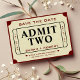 Retro Movie Ticket Stub Admit Two Wedding Save The Date