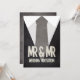 Stylish, retro gay wedding invitation with Mr & Mr written over a black suit and gray tie.