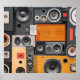 Retro Music Speaker Wall Design Poster