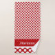 A retro named red and white polka dot pattern decorates the bath towel set. The beauty, this classy bathroom accessory allows color customization by modifying the name and the fill color. Like this, match the newlyweds' gift with the bride's and the groom's favorite color. Please remember to adjust the shape coloration too. For help with color and design customization, contact https://t.me/KBMD3signs_chat.