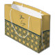 Presenting our retro navy and mustard brown Customizable Gift Bags tailored for small businesses. Enhance your brand's gift presentation with this sophisticated choice for special occasions. The mustard brown background, paired with the geometric navy overlay pattern, creates a bold design with a sense of retro vintage sophistication and elegance. This gift bag is customizable with your business logo, allowing you to add a personalized touch to your products. Elevate your brand's image and make a lasting impression with this stylish and versatile gift bag designed with businesses in mind.