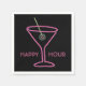 Made to look like a vintage bar sign, the retro design on these paper napkins features a neon pimento-stuffed olive on a toothpick floating in a pink neon martini glass. With one word on each side of the glass’ stem, the phrase “HAPPY HOUR” is spelled out in open text in the same pink. The customizable text can easily be changed to say whatever you like or can be deleted altogether. From my original digitally created image.