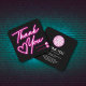 This retro and cool business customer thank you card is perfect for the modern and trendy business. It features a neon pink lighted script typography on top of a black striped background with cute hand-drawn hearts. It's playful, fun, and simple. The card includes a thank you message, a discount message, your social media information, your logo, and your business information; all of which can be customized to your liking. This nostalgic design will surely impress your customers and encourage return business.