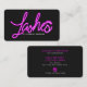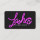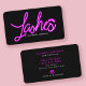 This business card features the word "Lashes" in an elegant script font in neon pink against a black background. Perfect for lash technicians. You can change the text or background to whatever color you wish.