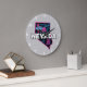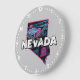 Modern round wall clock features retro style Nevada state silhouette with iconic skyline and Las Vegas sign.