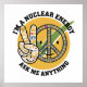 Explore this unique vector design featuring a colorful retro vintage theme with the saying "I'm a Nuclear Energy, Ask Me Anything." The design includes a smiling face with a peace sign made of nuclear energy icons, set against a yellow circular background with a green checkmark. Perfect for energy enthusiasts, science lovers, and eco-conscious individuals.