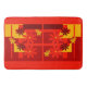 This rug is just as pictured! Vibrant Red and very soft material, nice to step in out of the tub! Matches my set of accessories and shower curtain! A must have to add some whimsy to your bathroom! Very nice, vibrant and clear print! Beautiful!