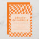 Retro Orange Abstract Check Wedding QR Code RSVP Invitation