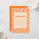 Retro Orange Abstract Checkerboard Baby Party Invitation
