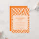 Retro Orange Abstract Checkerboard Graduation Invitation