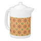 Retro Orange & Black Cute Abstract Floral Pattern Teapot