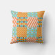Retro Orange Blue Mustard Yellow Patchwork Pattern Throw Pillow