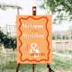 Retro orange curve squiggle wavy wedding welcome sign. All the text, names and background colors are customizable.