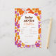 A retro baby advice & predictions card to match our "Hello Baby Retro Daisy Orange & Purple Baby Shower" invitations. View the collection linked on this page for matching items. This design features a groovy floral pattern background with a white oval overlay in the center. The flowery daisy pattern is in a bold orange and yellow 70s hippie color scheme. Inside the oval frame, there is space for guests to write their birth predictions, resemblance predictions, and advice for the new parents.