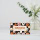 Stand out with this bold and stylish retro orange floral business card featuring a trendy black-and-white checkered pattern paired with bright orange, pink, and cream flowers. The design includes a striking orange 3D-style name font that adds personality and visual impact, while the back showcases neatly arranged contact details and social media icons for a clean, professional finish.