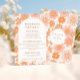 Enhance your wedding stationery with our elegant retro 70s themed wedding details card. This beautiful card features a bride and groom monogram on the back, set against a delicate orange, pink and yellow daisy floral design. The simple minimalist calligraphy script, elegantly displayed on a bohemian arch, adds a touch of classic sophistication. Perfect for adding a timeless and refined touch to your wedding celebration. Ideal for spring and summer weddings with a botanical or boho theme.