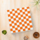 Cool fresh checkered pattern design, modern interior design decor for home, living room, nursery room, kids room. Checkered colorful curtains, rug, phone case. Checkered 70s and 60s trend design idea. Orange and white checkers