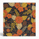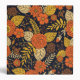 This floral pattern features retro-inspired colors including shades of yellow, orange, brown, and navy blue. It's almost like being back in the 1970s.